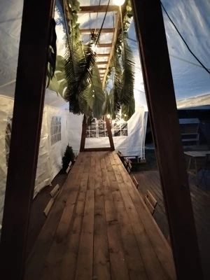 - Uzavřený párty stan Bavaria se skvěle hodí do přírody a poskytuje ochranu před deštěm, mírným větrem a sluncem.